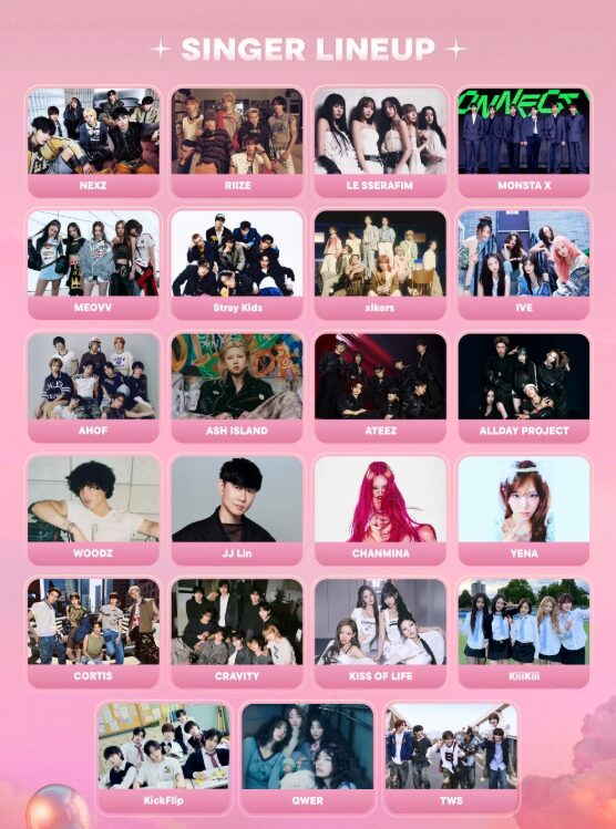 ※12月7日の「ACON2025」には、NEXZ、AHOF、ASH ISLAND、ATEEZ、WOODZ、YENA、KISS OF LIFE、KiiiKiii、KickFlip、CRAVITY、xikers、SB19、QWERの13チームが参加予定です。