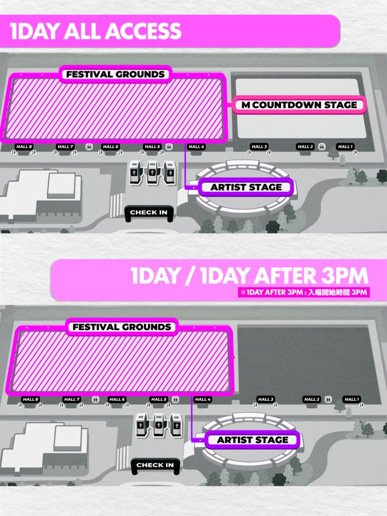 - 15:00以降入場可能/その時間以降のARTIST STAGEおよびFESTIVAL GROUNDS内コンテンツ利用可